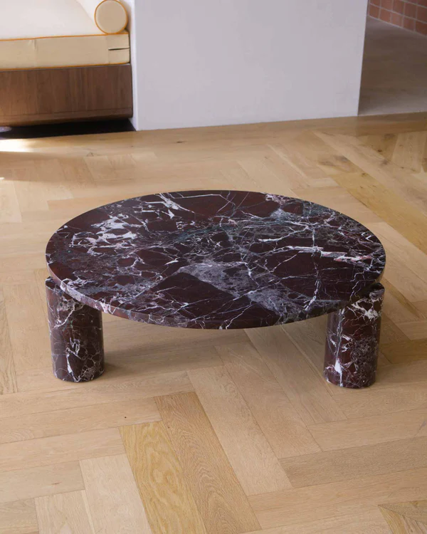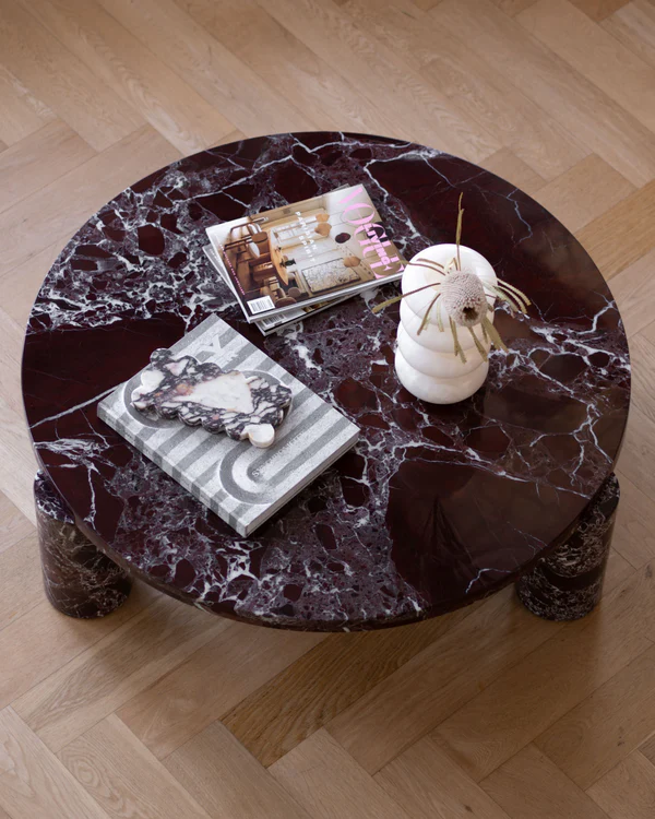 Rosa Levanto is a deep burgundy marble with notes of warm red, black and striking white veining. Luxurious and bold, this dark marble is surprisingly versatile and pairs beautifully with natural materials. You can see how others style Rosa Levanto marble